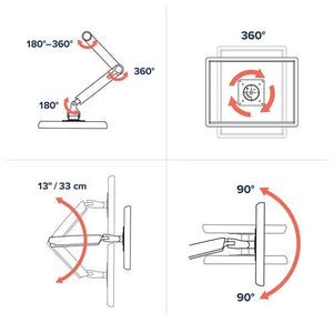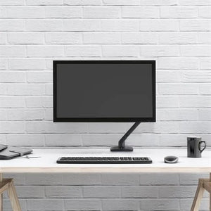 Fully assembled arm with 2-piece desk clamp and monitor mounting hardware |