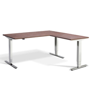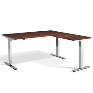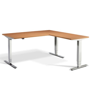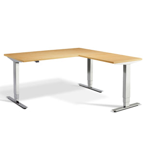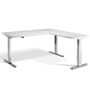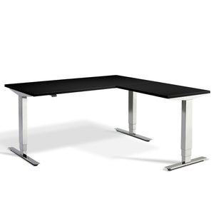 The Chrome Advance Corner desk is derivative of the Advance desk featuring an extra motorised leg. This provides an increased working area with a larger load capacity.