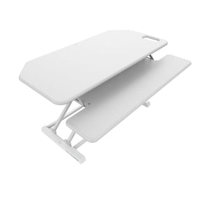 - 30 adjustable heights. Switch from sitting to standing in just 1 second by pressing the Quick-Release lock on the right-hand side